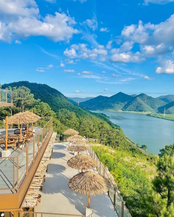 전망대 아덴 카페 원동점은 가족과 함께 방문하기에 정말 좋은 양산 갈만한곳으로 부모님과 아이들을 데리고 갔는데, 낙동강이 내려다보이는 멋진 전망이 카페의 가장 큰 매력이었어요. 창밖으로 펼쳐진 풍경이 시원하게 펼쳐져서 차를 마시며 여유를 즐기기에 딱 좋은 곳이었습니다.