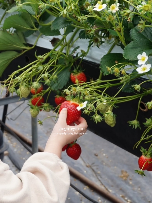 방문 시기는 2월 중순까지가 가장 좋다고 느꼈어요. 3월 이후에는 딸기가 많지 않고 맛도 떨어진다고 하니, 일정이 맞다면 빨리 다녀오는 게 좋을 것 같습니다. 딸기는 완전히 익은 것보다 살짝 덜 익은 것을 따야 집에서 보관이 더 오래되고 덜 무르더라고요. 따온 딸기로 딸기잼을 만들어서 맛있게 먹었습니다.