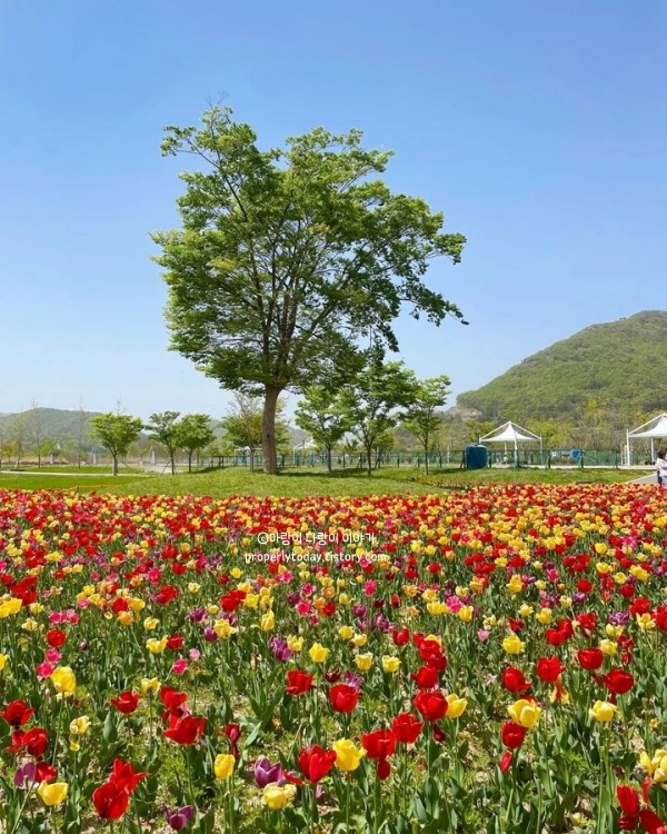 황산공원은 사계절 내내 다양한 볼거리가 가득해서 경남 양산 가볼만한곳 베스트 10으로 언제든 좋은 곳입니다. 유채꽃, 튤립, 벚꽃부터 가을에는 버베나, 댑싸리, 황화코스모스, 핑크코스모스까지 계절마다 다른 꽃들이 공원을 가득 메워서 구경하는 재미가 쏠쏠했습니다.