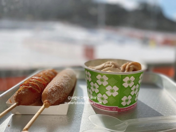 눈썰매장은 사람이 많지 않아 줄을 길게 서지 않고 바로바로 탈 수 있어서 좋았습니다. 다만 코스 거리가 짧아 큰 스릴을 기대하기는 어렵지만, 아이들이 즐기기에는 충분했습니다. 눈이 잘 뭉쳐져서 눈오리를 만들며 놀았는데, 공룡 모양도 사서 공룡 가족을 만들어 주니 아이가 정말 좋아하더라고요.