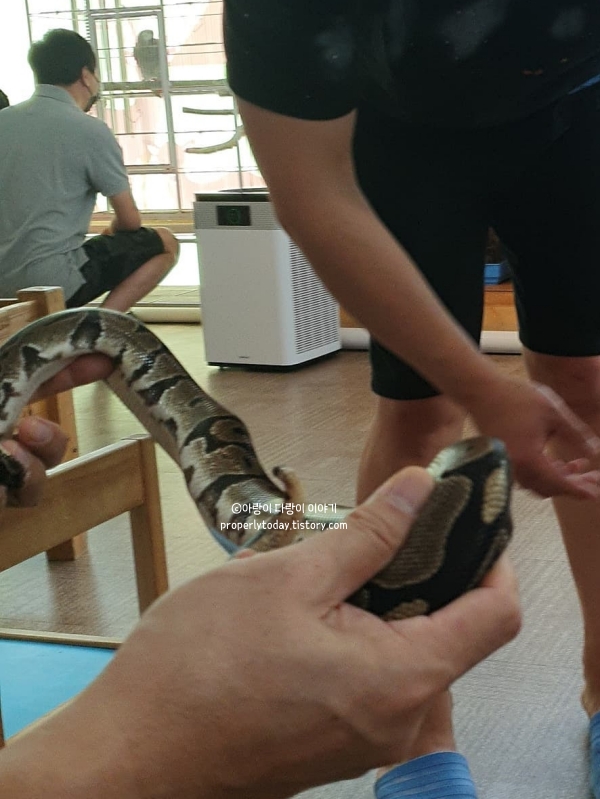시설이 깨끗하게 관리되고 있었고, 동물들도 건강하고 평온해 보여서 더욱 안심하고 즐길 수 있었습니다. 뱀, 피카츄(기니피그), 앵무새 등 다양한 동물들과 교감할 수 있는 기회가 많아 아이가 특히 좋아했어요. 앵무새에게 직접 밥을 주는 체험이 있었는데, 아이가 그 시간을 가장 즐거워했습니다.