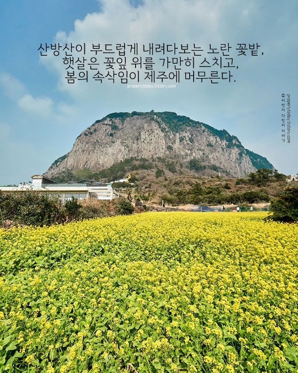 매화는 차가운 겨울 속에서도 봄의 희망을 가장 먼저 전해줍니다. 특히 제주에서 피어나는 매화는 그 청초한 모습으로 많은 이들에게 위로를 주죠. 매화의 은은한 향기를 따라 다가오는 봄을 느껴 보세요. 마음속에도 따뜻한 기운이 가득 차길 바랍니다. 밝고 희망찬 2월 되시길 바랍니다.