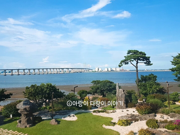 당진 햇빛 맛집으로 소문난 해어름카페는 일출과 일몰을 볼 수 있고 멀리 서해대교가 보이고 밀물과 썰물을 볼 수 있는 곳이면서 카페와 베이커리가 가능합니다. 넓은 서해바다뷰에 가슴이 뚫리고 알록달록 피어있는 튤립 뿐만 아니라 철마다 다채로운 정원도 볼 수 있습니다. 멋진 일몰을 보며 사진도 찍고 감탄하고 해가 지니 나무에 장식되어 있던 등불이 밝혀지고 낭만적이기도 했고 아름다운 건축물상을 받은만큼 정말 좋았던 수도권 당일여행 갈만한 곳이었습니다.
