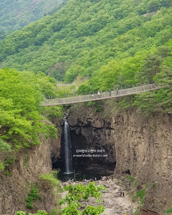 새롭게 출렁다리를 만들어놔서 정면뷰가 더 근사한 재인폭포를 보기 위해 연천 드라이브를 떠나보는 건 어떤가요? 재인폭포는 한탄강에서 가장 아름다운 경관을 자랑하는 곳으로 높이 18m의 현무암 주상절리 절벽에서 물이 쏟아지며 웅장함을 자랑합니다.