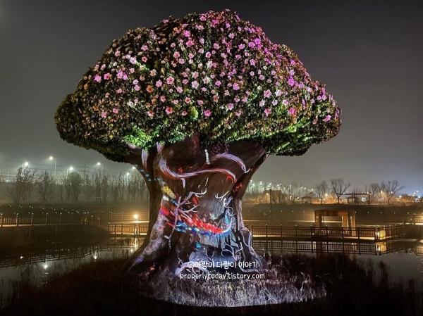 반짝반짝 신비의 나무가 있는 임진각수풀누리는 낭만적인 장소로 다양한 영상미와 미디어가 주변 경관과 어우러져 야경을 더욱 아름답게 만들어줍니다. 그래서 서울 근교 야간드라이브하기 좋은 곳입니다. 높이 13m의 초대형 나무조형물 하나그루에서 펼쳐지는 미디어아트는 시선을 단번에 사로잡을 정도로 매력이 넘칩니다.