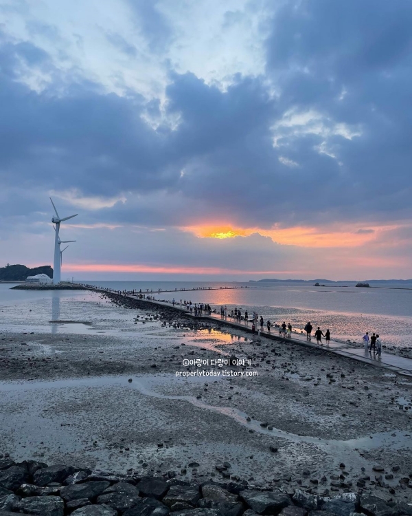 바닷길이 열리면 걸어서 누에섬까지 산책할 수 있는 탄도항은 낮도 아름답지만 개인적으로 해질녘 풍경이 더 예쁘다고 느껴집니다. 서해 일몰은 사랑이고 힐링이 되어주죠. 안산에 위치한 탄도항은 경기도 일몰 명소로 유명하고, 탄도항 내에서는 스텔스 차박만 가능, 진입로 주변은 텐트만 칠 수 있습니다.