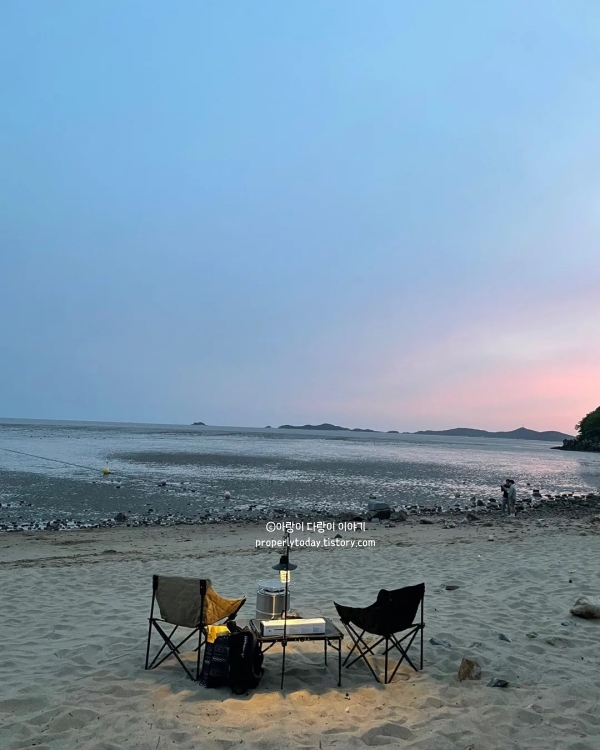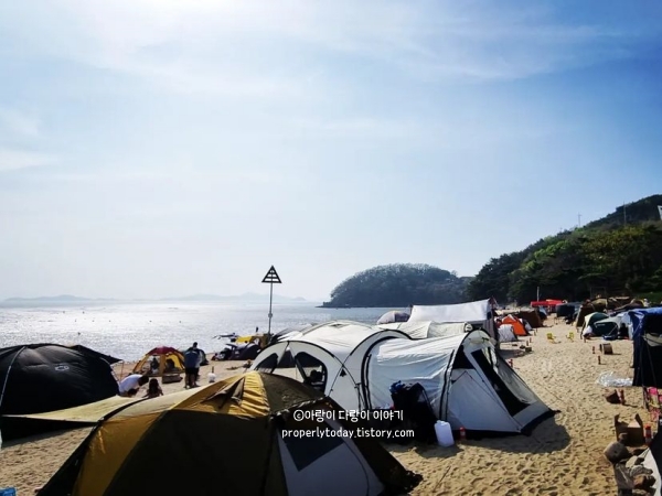 저는 토요일 오후 4시쯤 도착했는데 물이 빠져 갯벌에서 조개 캐는 사람들도 많고, 해수욕장 캠핑하는 사람도 많았습니다. 화장실도 있고, 편의점도 있고, 장작도 팔아서 불멍도 가능해 보입니다. 주차장에서 텐트, 어닝등 캠핑은 금지 되어있고, 주차하고 스텔스 차박은 가능했습니다.