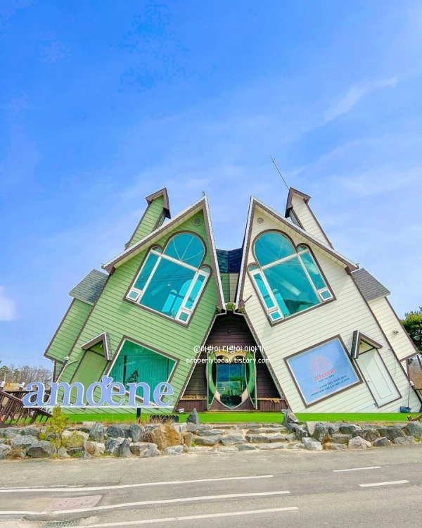 이상한 나라의 앨리스의 한 장면 같은 공간 인천 강화도 아매네카페입니다. 삐뚤빼뚤 강화도 동화속 세상 아매네카페는 강화도의 거꾸로 카페로도 유명합니다. 아늑한 분위기에 힐링하기도 좋고 음료와 케이크도 정말 맛있었어요. 그 중에서도 '강화사자발쑥라떼'와 '레몬애플티'가 이곳의 시그니처이니 추천합니다.