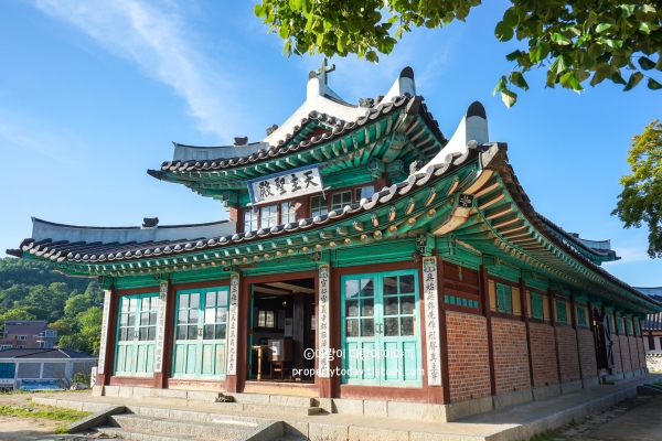 한옥의 멋을 볼 수 있는 강화성당은 전통 한옥으로 지어진 성당의 외양이 독특했고 저도 방문해서 정말 예뻤다고 느낀 곳입니다. 바실리카 양식과 동양 불교 사찰 양식을 융합한 건축물이라서 성당 같기도 하고, 사찰 같기도 한데 100년이 넘는 역사를 간직한 건물로 서로 다른 전통문화를 존중하고 있음이 느껴졌습니다.