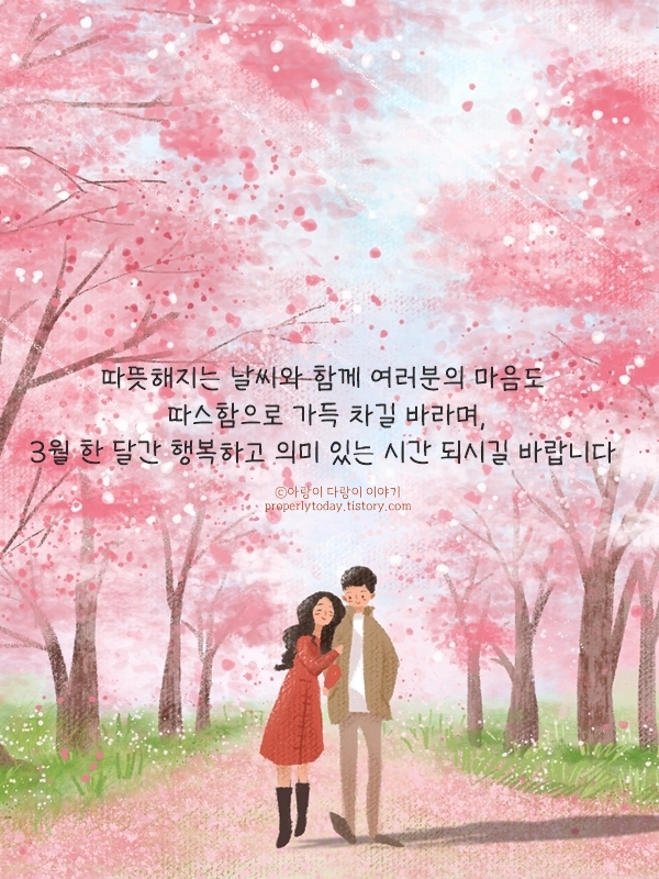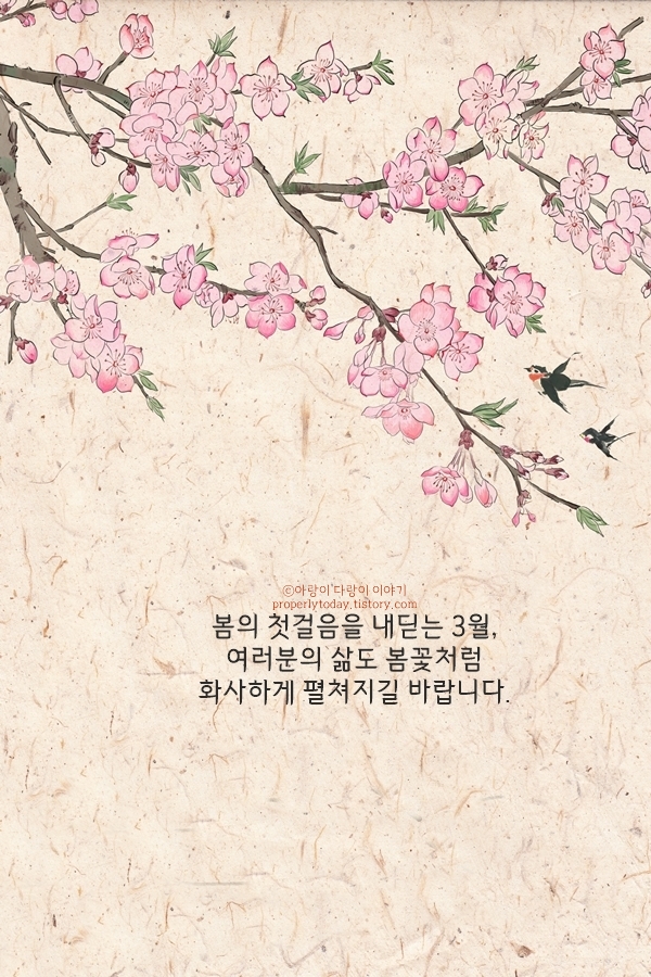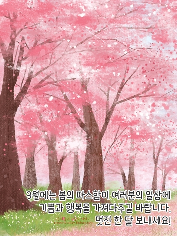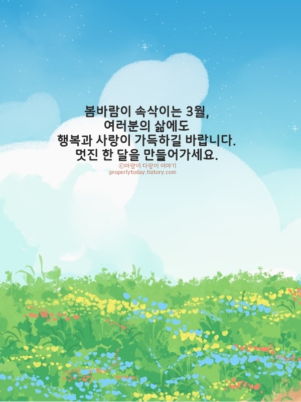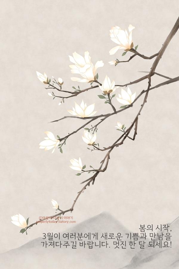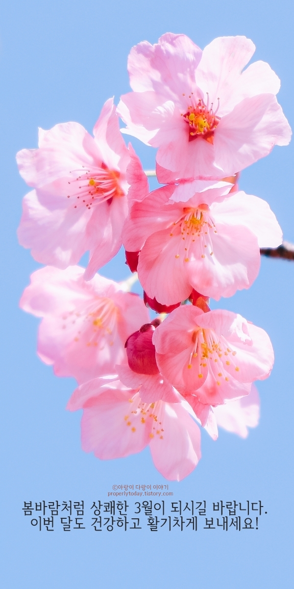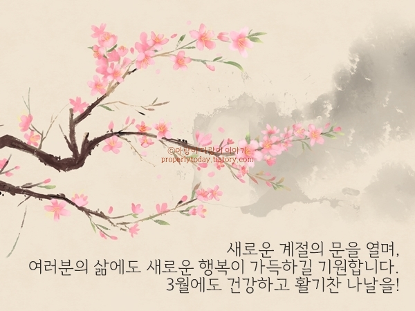 새로운 계절의 문을 열며, 여러분의 삶에도 새로운 행복이 가득하길 기원합니다. 3월에도 건강하고 활기찬 나날을!