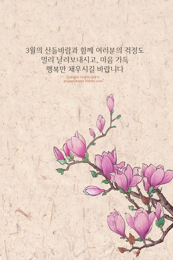 3월의 봄바람처럼 상쾌한 기분으로 매일을 시작하시길 바랍니다.