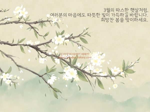 3월의 따스한 햇살처럼, 여러분의 마음에도 따뜻한 빛이 가득하길 바랍니다. 희망찬 봄을 맞이하세요.