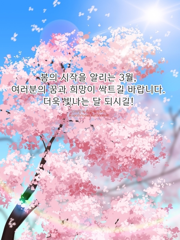 3월, 모든 것이 새롭게 시작되는 시기입니다. 여러분의 삶에도 새로운 기회가 가득하기를 바랍니다.