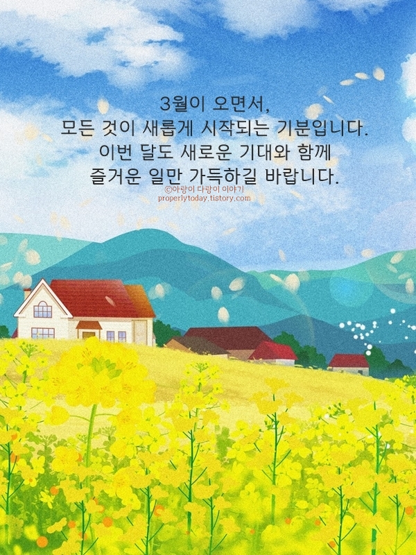 3월에는 새로운 계절의 시작을 기념하며, 모든 일에 긍정의 에너지로 가득 찬 시간이 되길 바랍니다.