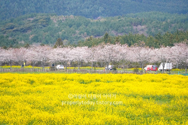 구불구불 도로를 따라 드라이브 하기도 좋은데, 벚꽃 뿐만 아니라 유채꽃도 있어서 더 예뻐요. 올 해는 3월 20일부터 제주도의 벚꽃이 개화한다고 하고 녹산로는 조금 늦은 편이라, 3월 말 정도면 딱 예쁜 풍경을 감상할 수 있습니다.