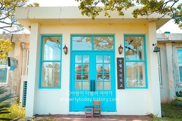 드라마 웰컴투 삼달리 촬영지 제주도 명월국민학교는 폐교를 그대로 살려 만든 카페로 학교 건물부터 넓은 운동장까지 추억 떠오르게 하는 곳입니다.
