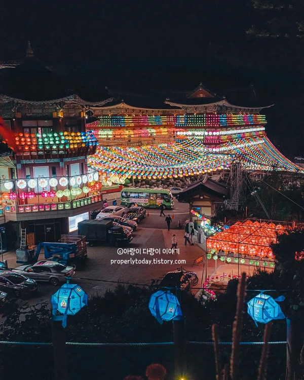 5월에 가볼만한 국내여행지 추천 부산 삼광사에서 열리는 연등축제는 정말 환상적입니다. 어두워진 밤하늘 아래, 약 5만 개의 형형색색 연등이 마치 별빛처럼 수놓아진 장관을 연출합니다. 이 축제는 마치 애니메이션 '센과 치히로의 행방불명' 속 한 장면 같은 신비로운 분위기를 자아내죠.