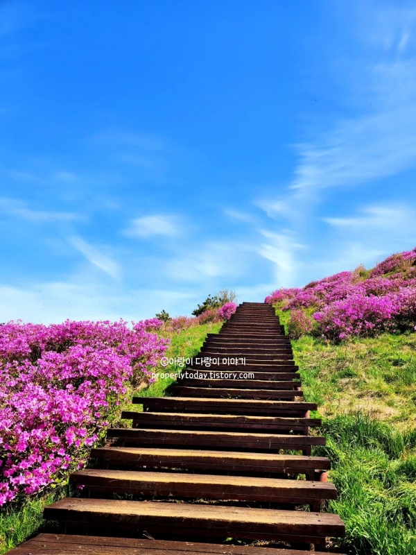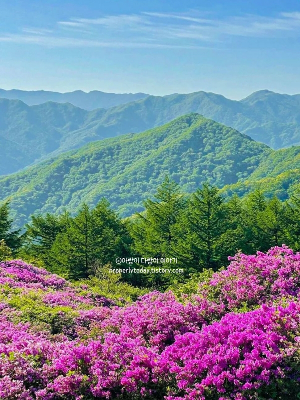 등산을 하면서 저절로 흥이 나는 이유가 바로 이 꽃들 때문이에요. 열심히 등산해서 정상에 도달하면, 보랏빛 철쭉들이 화려하게 펼쳐진 장관을 만날 수 있습니다.