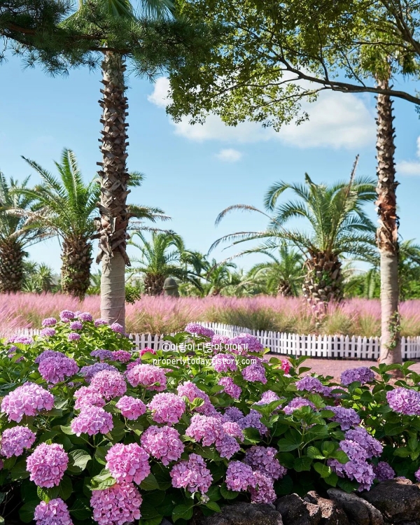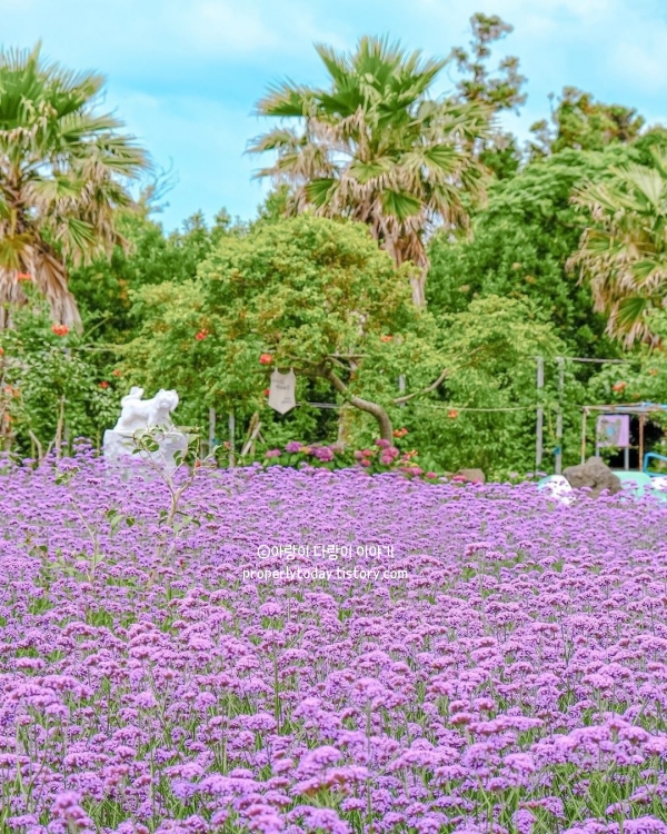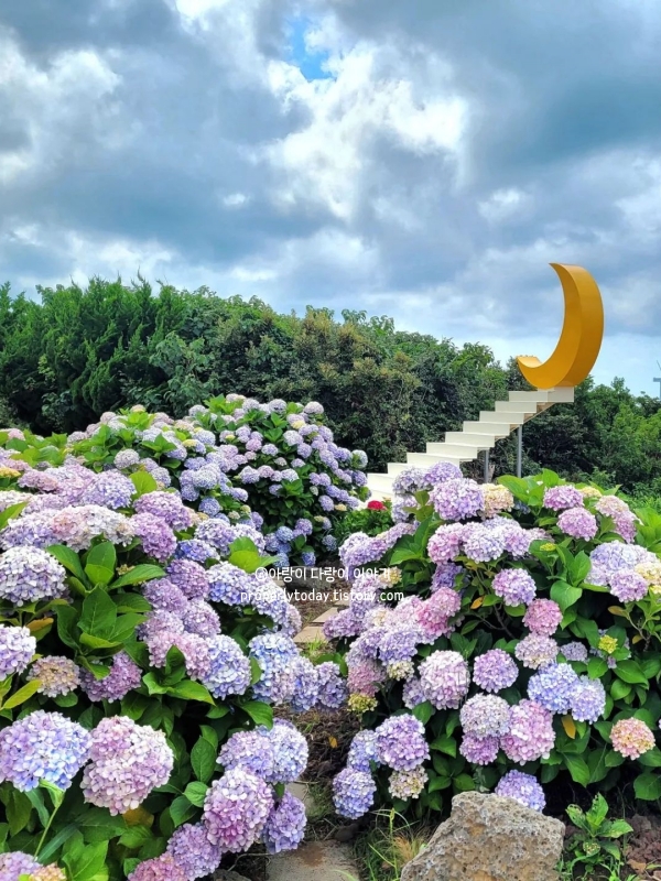 능소화와 수국 뿐만 아니라 샤스타데이지, 버베나, 수국 등 다양한 여름꽃들도 감상할 수 있어 제주도 수국명소로 추천합니다.