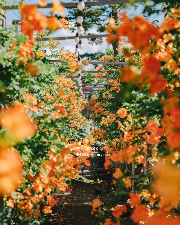 비체올린의 6월은 제주도 수국축제와 능소화 축제가 동시에 열립니다. 특히 능소화는 전국 최대 규모로 열리는 행사라서, 넓은 면적에 능소화가 활짝 피어 있더라고요.
