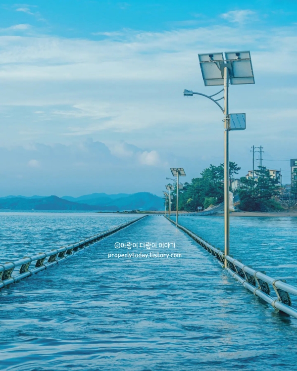 웅도 잠수교는 서해의 아름다운 풍경 속에서 물에 잠기는 독특한 다리로, 만조 시간에 맞춰 방문하면 더욱 인상적인 모습을 볼 수 있는 서산 가볼만한곳 베스트 10입니다. 물이 빠지기 시작하면 다리 위로 천천히 바닷물이 차오르며 신비로운 분위기를 연출하는데, 이때를 놓치지 않고 사진을 남기려는 사람들이 많았습니다.